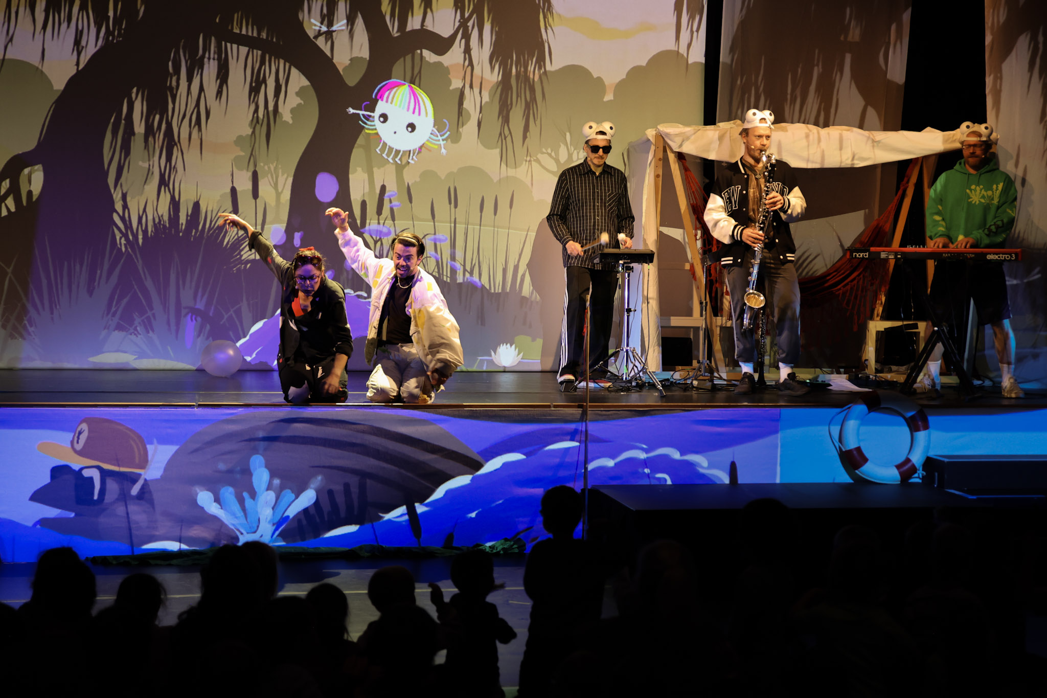 Photos from the children's theater production "Allez Hop - Quatsch mit Quak" at Konzerthaus Vienna.